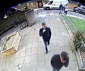 The first man is described as being white, in his mid-twenties, of slim build and clean shaven with short black hair. He was wearing a blue shirt, dark trousers and possibly brown shoes.