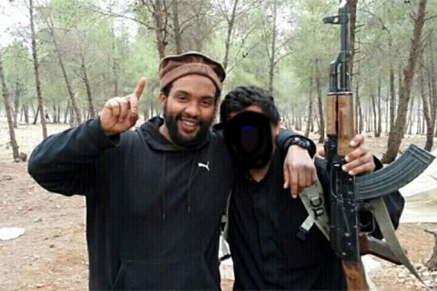 Aine Davis (left) at an ISIS training camp. Picture: Facebook