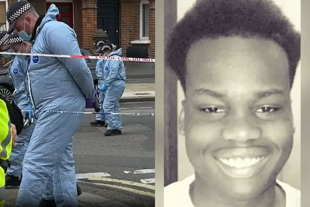 Left: Police on Comeragh Road after the shooting. Right: Janayo Lucima. Picture: BBC/Met Police