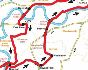 The route for both races will follow essentially the same route as last year with the outward routel going along the A4 through Hammersmith and over Chiswick Bridge, while the return route is through Putney, over Putney Bridge and then through Fulham on the way the the Finish line at The Mall.