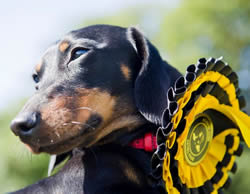 Nudel the miniature Dachshund scored a double at the Ravenscourt Park Dog show on Saturday August 31, after winning both best pedigree dog and overall Best in Show for his owner Siobhan Martin.