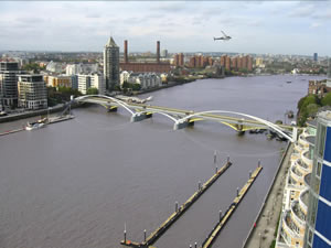 The free-standing bridge will be 18.4m high and stretch 170m across the River Thames, just west of the existing Grade II* listed railway bridge, from Imperial Wharf in Fulham to Lombard Road in Battersea. It will be the first new Thames crossing in a decade