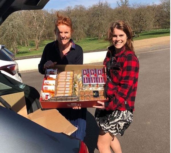 Sarah Ferguson and daughter Princess Eugenie load up care packages for NHS staff