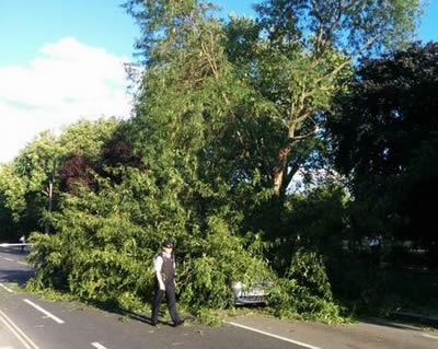 The junction of Lillie Road and Fulham Palace Road was closed for several hours during the evening of Tuesday July 29, after a large section of a tree on the edge of Lillie Road Recreation Ground sheered off and engulfed a passing car.