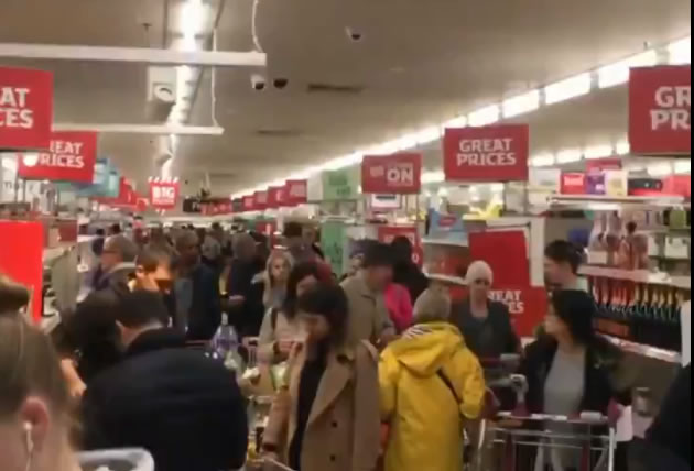 Queues in a London supermarket at the beginning of the pandemic. Picture: Sky News