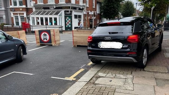 Drivers mounting pavements to get through blocked off roads. Picture: One Wandsworth