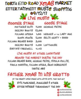 North End Road goes traffic-free once again this Saturday, 9 December for the 2017 Christmas Market.