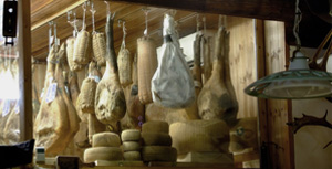 Greeted like we were old friends, we were led through the large, modern restaurant past an open kitchen, hung parma hams and a tempting display of Italian cheeses to our table.