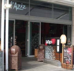 Del'Aziz describes itself as serving Mediterranean food, but the menu covers a much wider area and offers several Iranian dishes as well as a whole variety of burgers, all made from 'grass-fed Scottish beef'. Perhaps 'fusion food' would be a better way of describing what's on offer here: you could quite happily start with a mussels and pepper salad (£4.50) followed by a Del'Aziz humous burger (£5.50) or perhaps a chicken tajine (£10.50) with a bit of tomato ketchup or HP sauce on top.