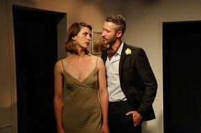 It’s London 2014 and anybody who’s anybody in society is at a cocktail party at the home of too-good-to-be-true MP Robert Chiltern (Doug Cooper) and his beautiful, adoring wife Gertrude (Kathryn Hamilton-Hall). She is unaware that this privileged existence could come crashing down around her ears at any moment – Robert’s got a secret and somebody’s about to let the cat out of the bag.