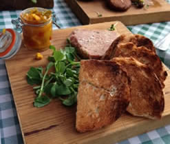 The portions are generous and on advice we ordered three small plate plus one mezze board to share. The ham hock terrine (front of picture left) with home made piccalilli (£5.50) melted in the mouth and was served with granary toast. The Mezze board to share had falafel, hummus, baba ganoush, tzatziki & toasted flat breads with cornichons and olives (£8.50) - all delicious.