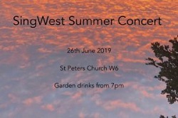 You can find out more about SingWest Hammersmith, who meet at the church between 7.30pm and 9pm every Monday during term time on its website. The final session this term for Hammersmith is 24 June, with the next term beginning on 9 September. There is also a second choir across the river in Barnes, who meet every Wednesday in Barnes Methodist Church, followed by a visit to the Sun Inn!