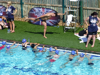 They gave master classes for 100 children, aged 8-12, covering swimming, synchronised swimming, diving, mini polo, and water safety and lifesaving skills. There was a chance to watch 'Race an Olympian' and the athletes were also available for photos and autographs.