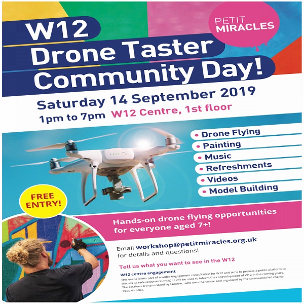 The highlight of the event, which is being organised by award winning community charity Petit Miracles, will be Drone Taster sessions, offering hands on drone flying opportunities for everyone aged seven and up.