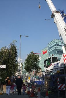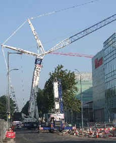While the road was closed, the pavement remained open to pedestrians, separated from the crane by a fence. In the light of a crane accident in Waterloo at the end of September - completley unrelated to Westfield - in which a woman waiting at a bus stop was injured by an item falling from a crane, we asked the Council and Westfield to reassure local residents: