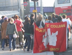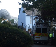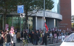 At about 5.15pm the BNP leader arrived at Television Centre but avoided the protesters by entering the building through the gate at the top of Frithville Gardens, next to Hammersmith Park.