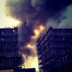 The Brigade was called at 0935. Fire crews from Hammersmith, North Kensington, Willesden, Kensington, Paddington and Chiswick fire stations are attending the incident. The cause of the fire is not known at this stage.