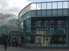 The dedicated 'computer' area has only three machines but there are several more computers dotted around the building along with comfy chairs and study tables. The large study area upstairs, accessible by a staircase and lift, is equipped with computers, photocopiers and plenty of places to sit and work.