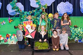 A stage is set with flowers, birds, trees and grass. Reception children join the idyllic scene, dressed as bunny rabbits lolloping and butterflies fluttering! What could possibly go wrong?
