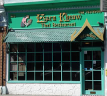 According to the Lonely Planet, the northeast of Thailand is a place “where people munch on chillies like chewing gum” and the menu at Esarn Kheaw certainly reflects a love of the spicy stuff. As well as the usual Thai fare, Esarn Kheaw also offers several regional specialities, such as a spiced papaya salad (£4.95), marinated chicken livers (£6.95) and spiced duck (£9.95). The menu is helpfully divided into different sections offering beef, pork, chicken, fish, stir fried dishes, Thai curries, noodles and rice, and has a varied enough vegetable selection to give vegetarians a decent choice.